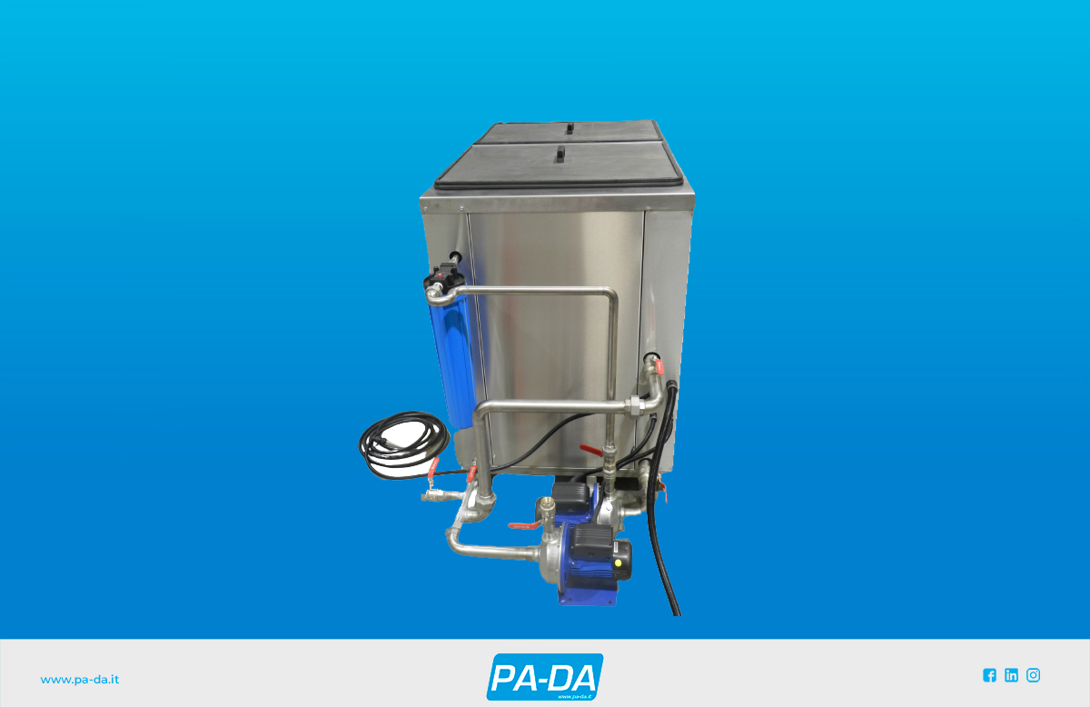 Queste vasche possono essere dotate di accessori, quali: coperchio, struttura di supporto vasca, cestelli.